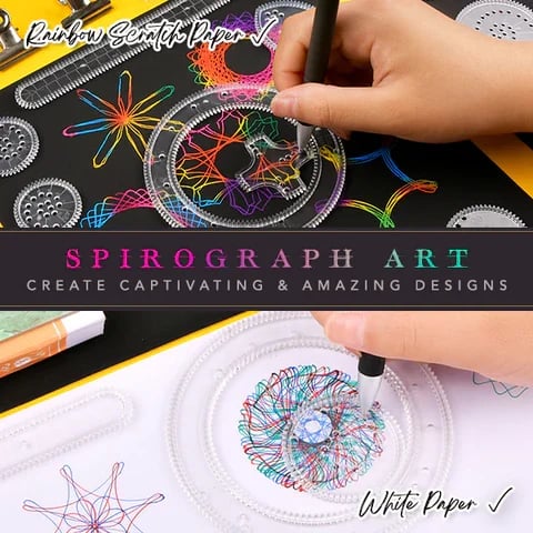 Spirograph Geometric Ruler Set is an all-inclusive set that allows you to create countless amazing spirographs. Creating all of those dizzying and cool drawings can provide hours of fun. as well as training artistic imagination and building geometry intuition. Great for both kids & adults.